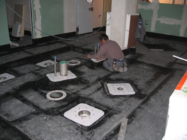 Abdichtung im Bereich des Küchenblocks, der Gullies und der Bodenrinne