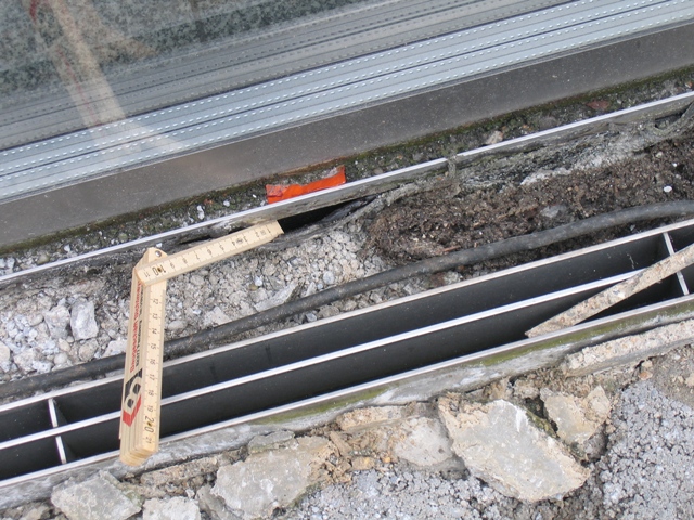 die Anschlussfolie ist unzureichend am Sockel-element befestigt Wassereintritt in die Fußbodenkonstukion